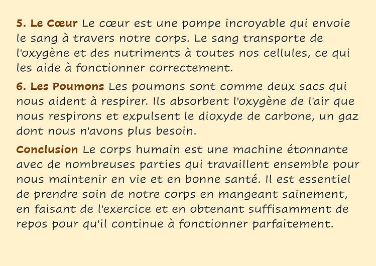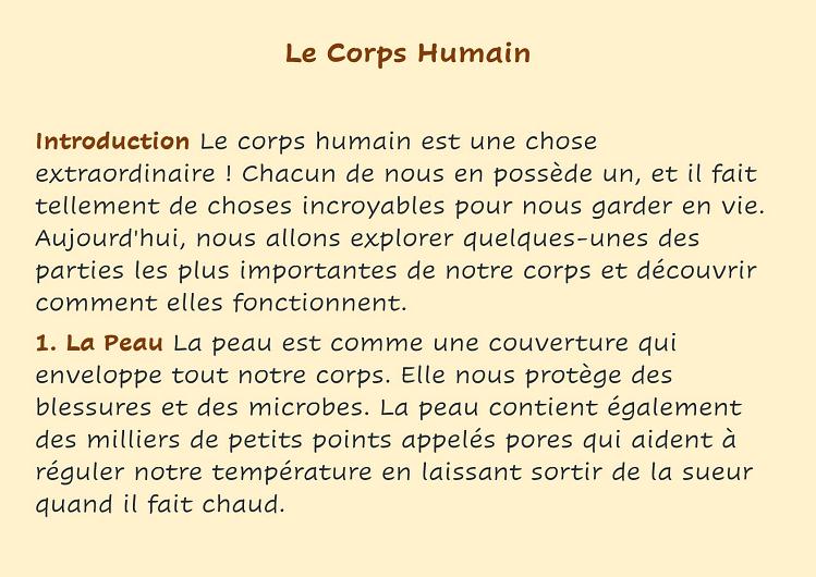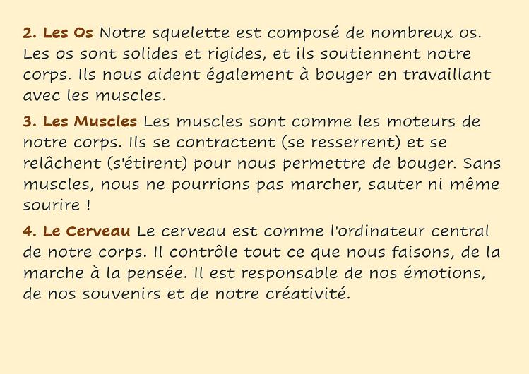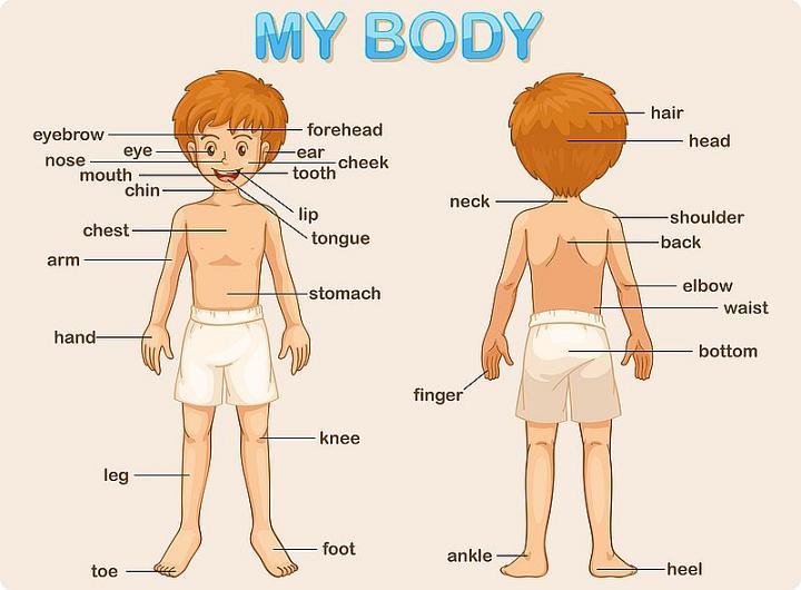 Essaye de traduire en français les mots anglais désignant différentes parties de ton corps