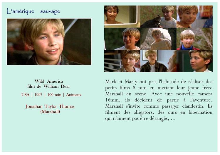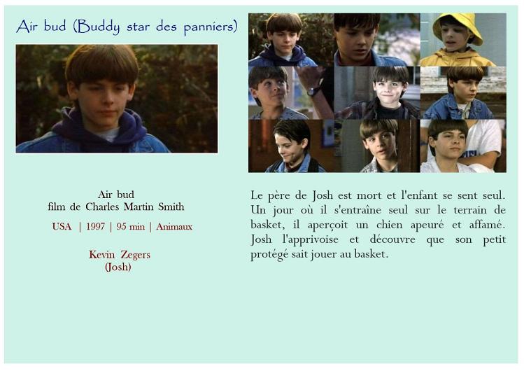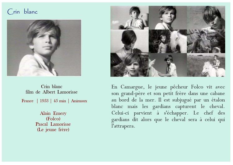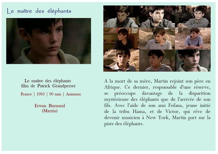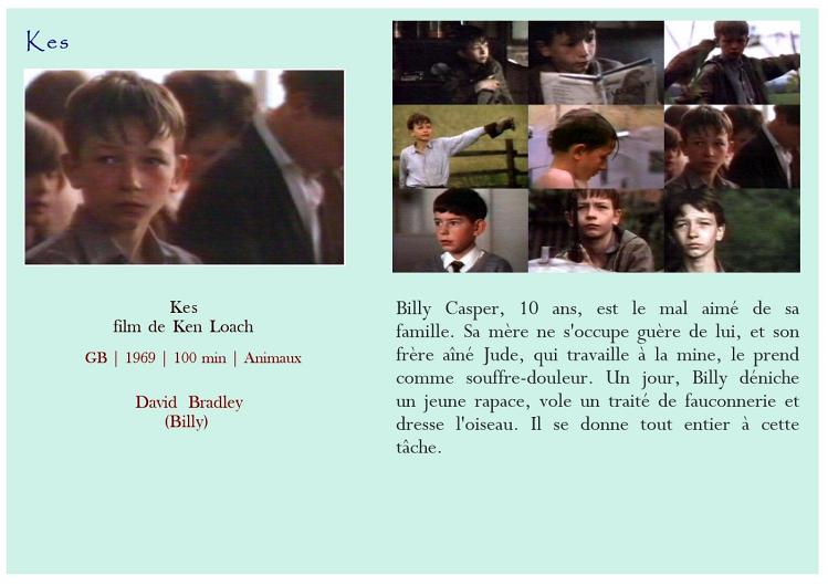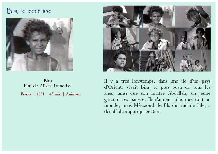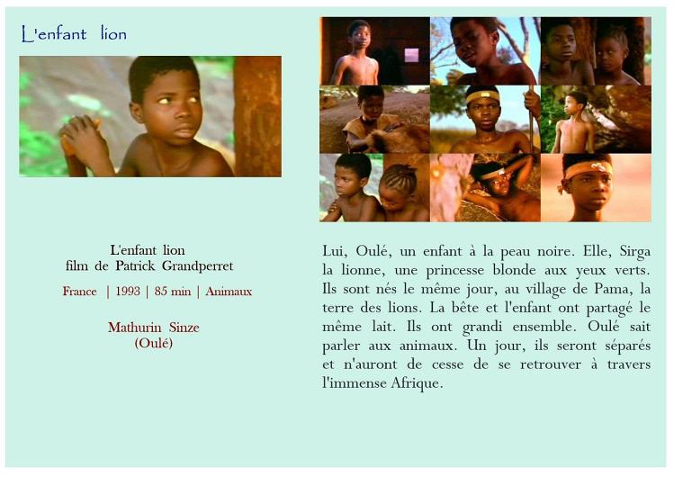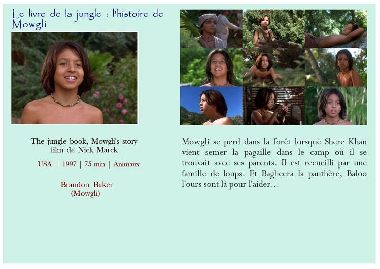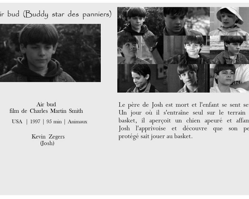 Air bud Belle et Sébastien Belle et Sébastien Bim, le petit âne Boule et Bill Crin blanc Fidèle Lassie Kes L'Amérique sauvage L'enfant lion L'étalon noir Le livre de la jungle - L'histoire de Mowgli Le maître des éléphants Les nouvelles aventures de Mowgli Mon amie Flicka Mon chien Skip Prince noir Sauvez Willy Storm boy AmitiéAttention Enfants