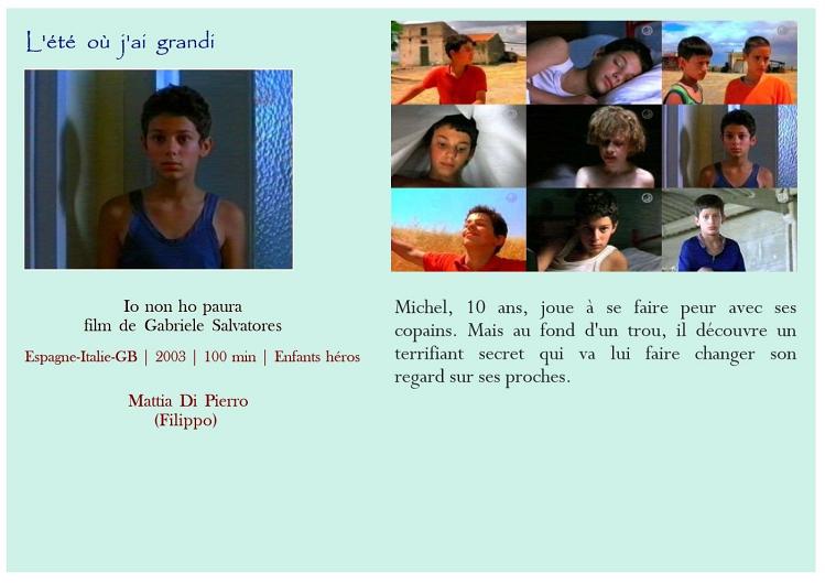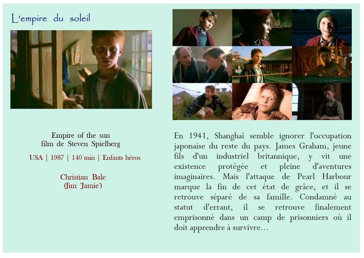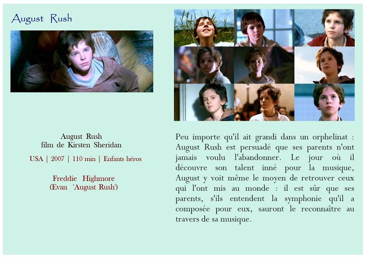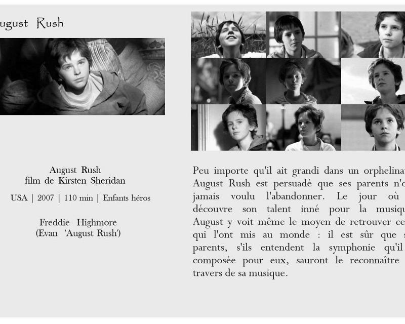 August Rush Daddy L'empire du soleil L'enfance d'Ivan L'incroyable histoire de Winter le dauphin L'été où j'ai grandi La dernière légion La légende de Daran Les nouvelles aventures de Flipper Les petites canailles Mes amis et moi Un monde meilleur Enfants en dangerEnfants seuls