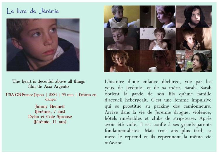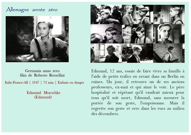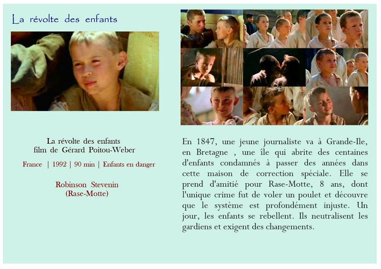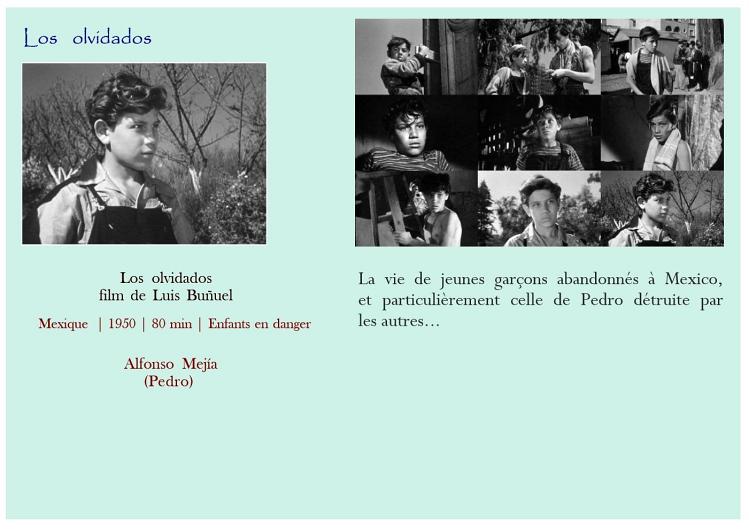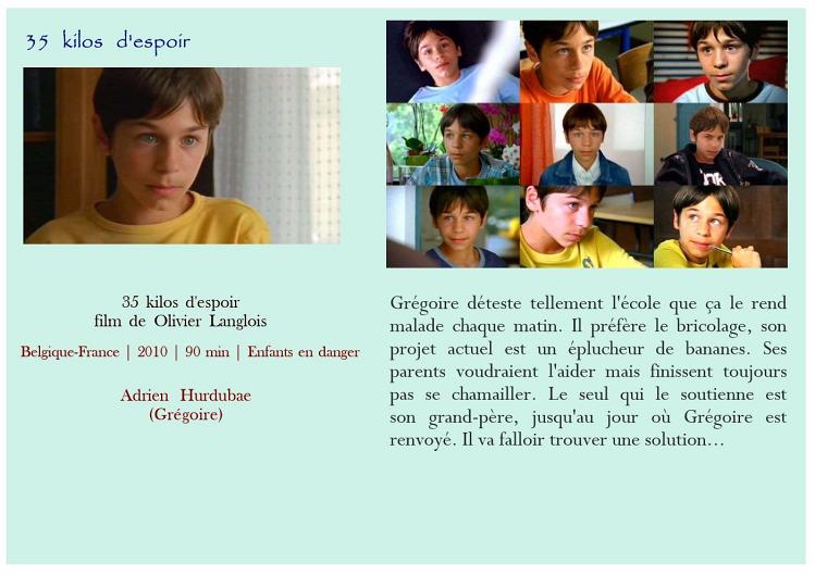 35 kilos d'espoir Allemagne année zéro L'argent de poche L'autre rive L'étoile de Robinson La révolte des enfants Le client Le livre de Jérémie Le Petit Poucet Los olvidados Enfants différentsEnfants Héros