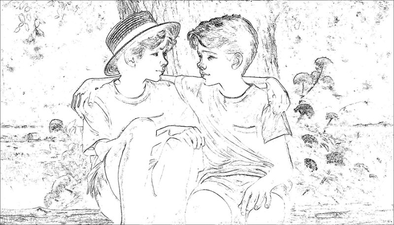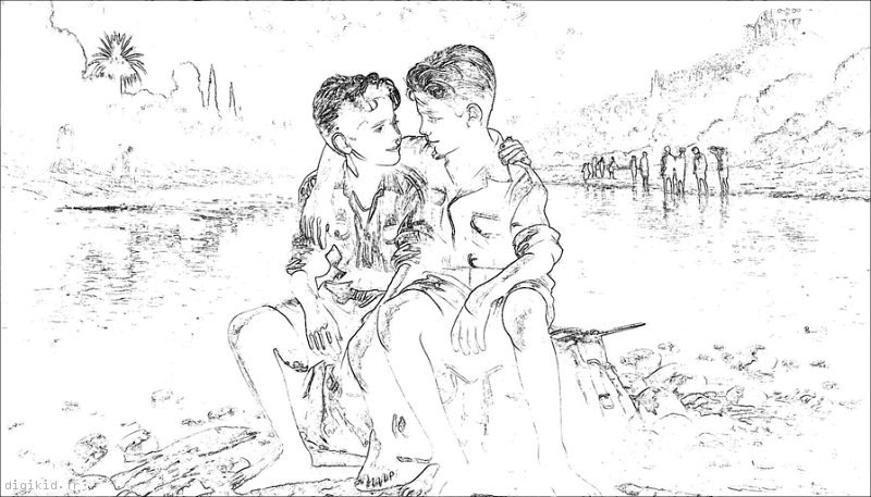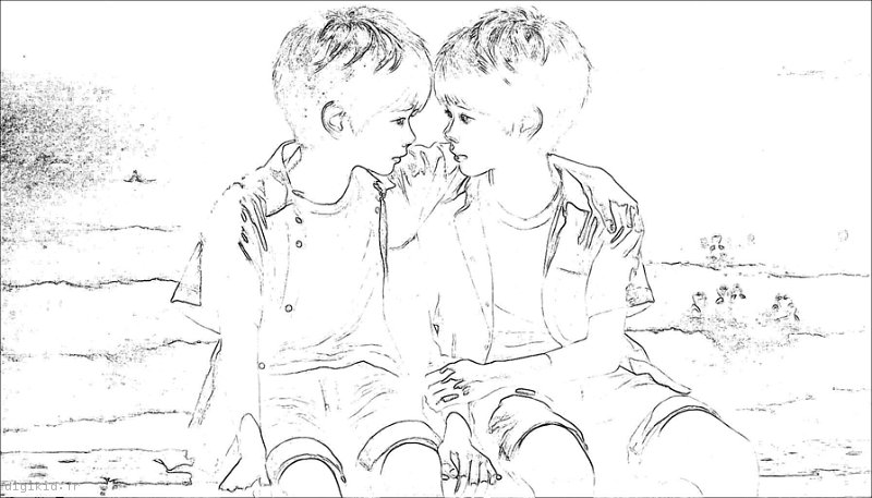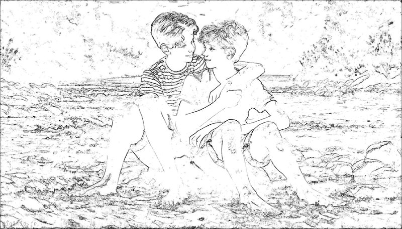 • Deux garçons à la mer