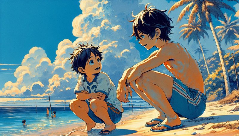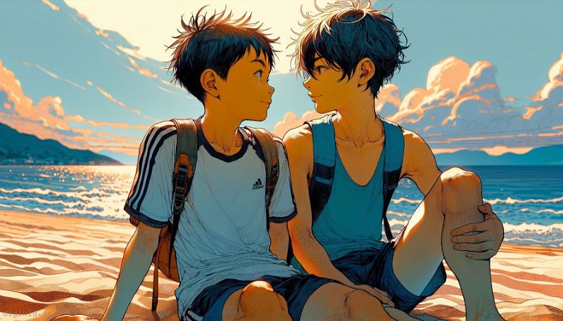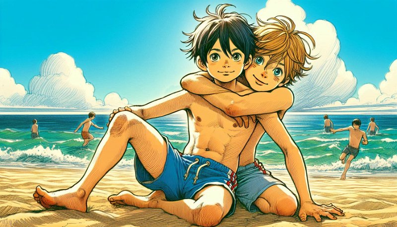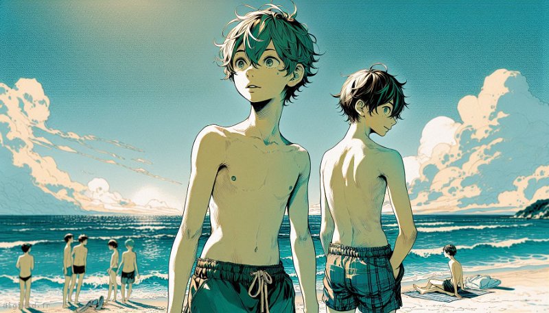 • Deux garçons à la mer