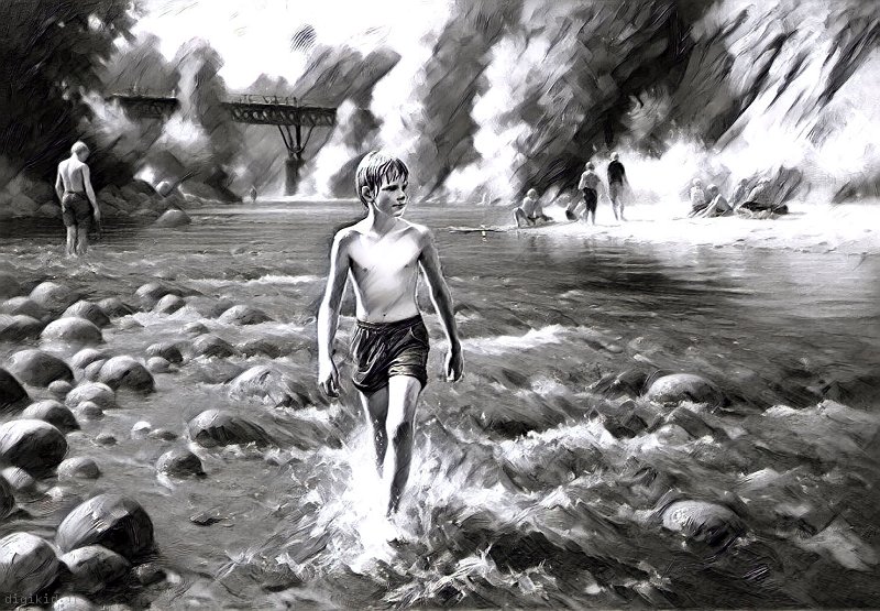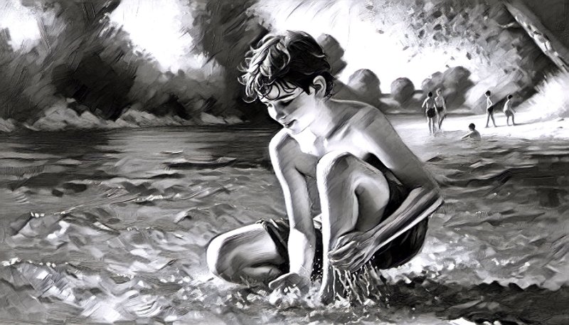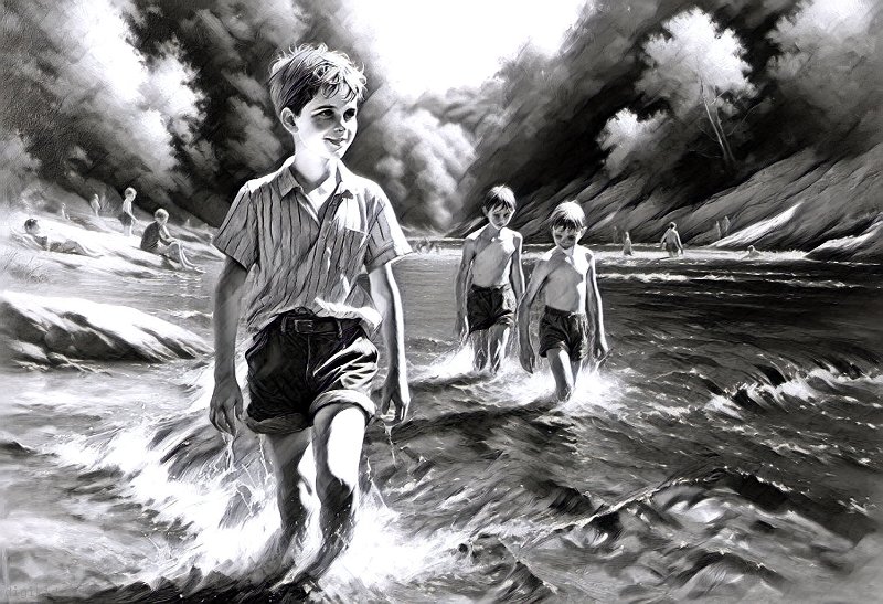 • Deux garçons à la mer