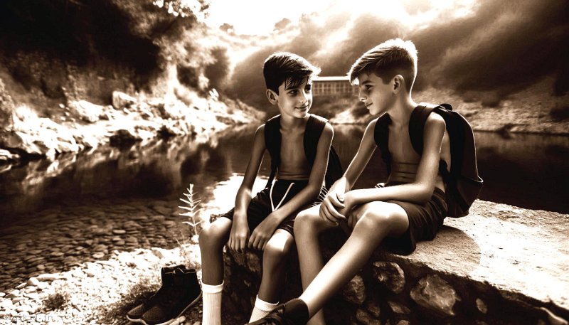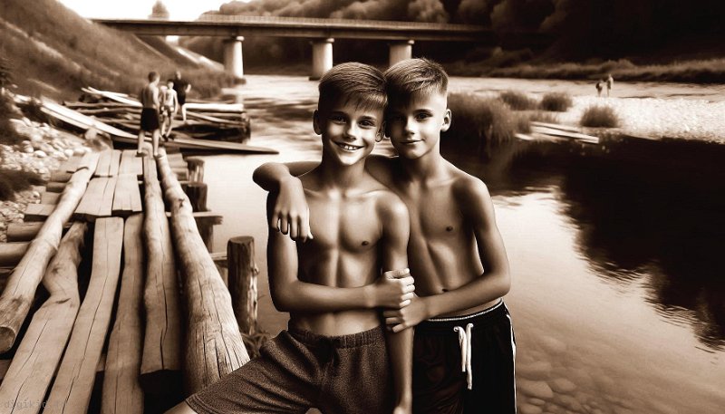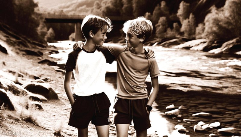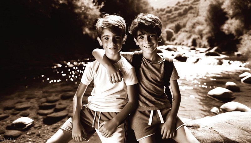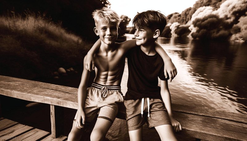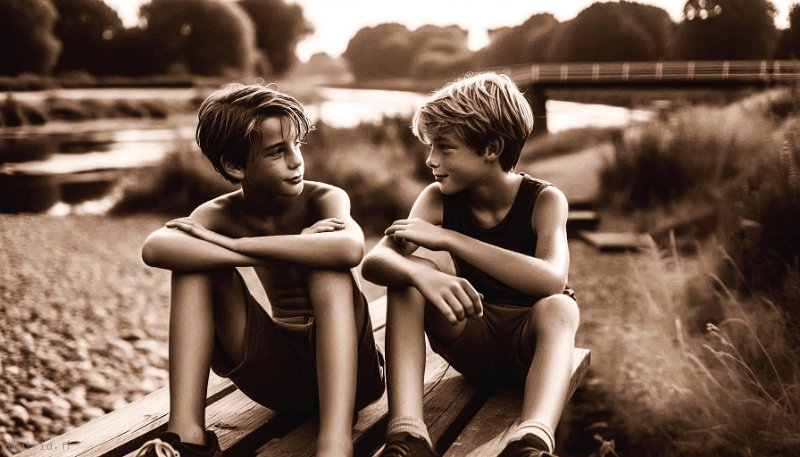 • Deux amis à la rivière