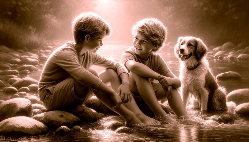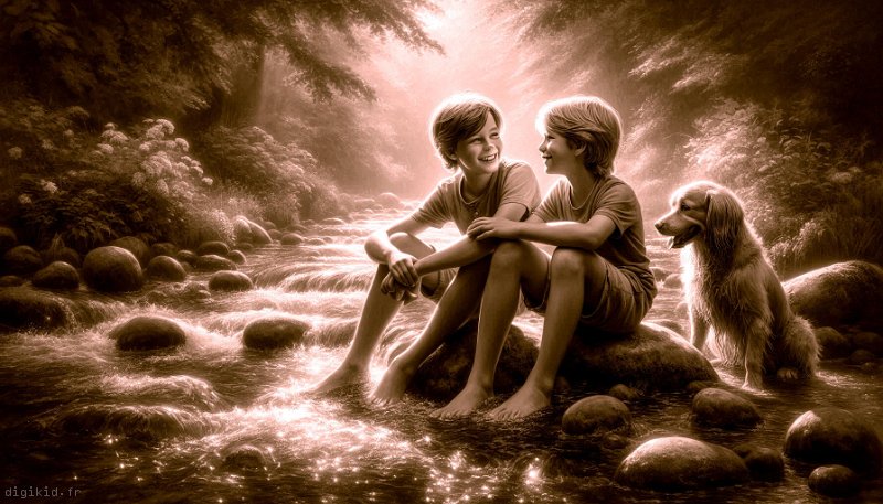 • Deux amis à la rivière