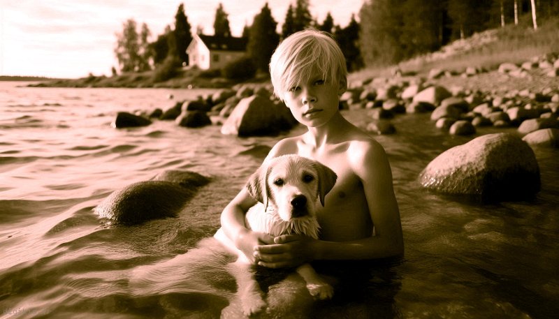 • Deux amis à la rivière