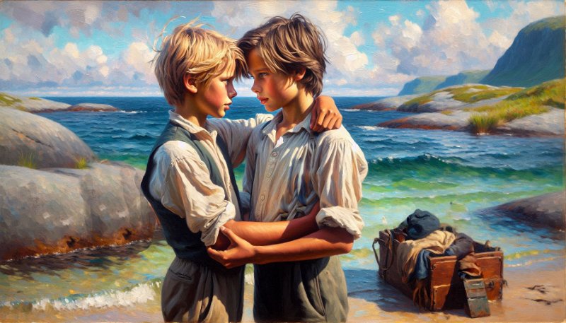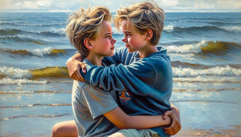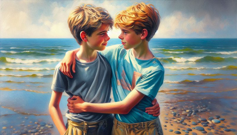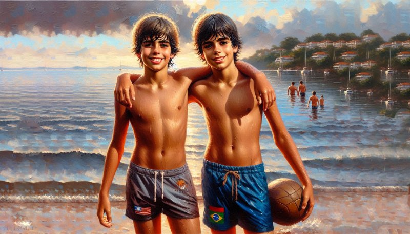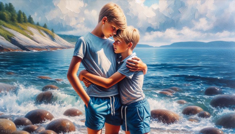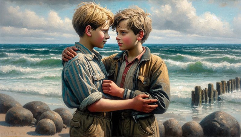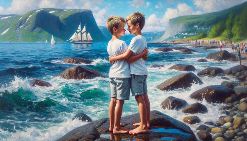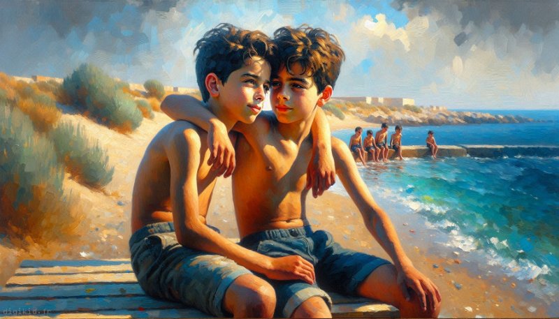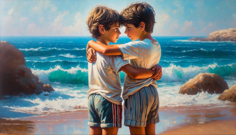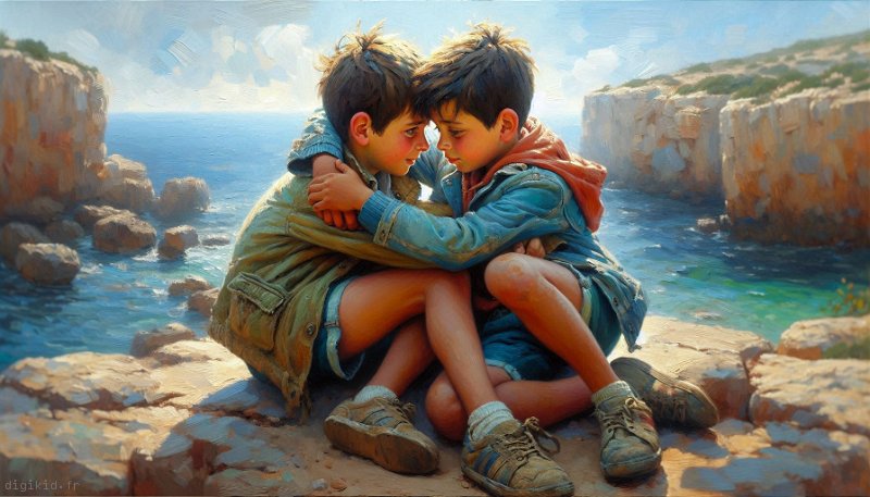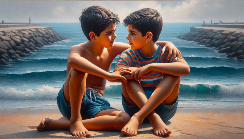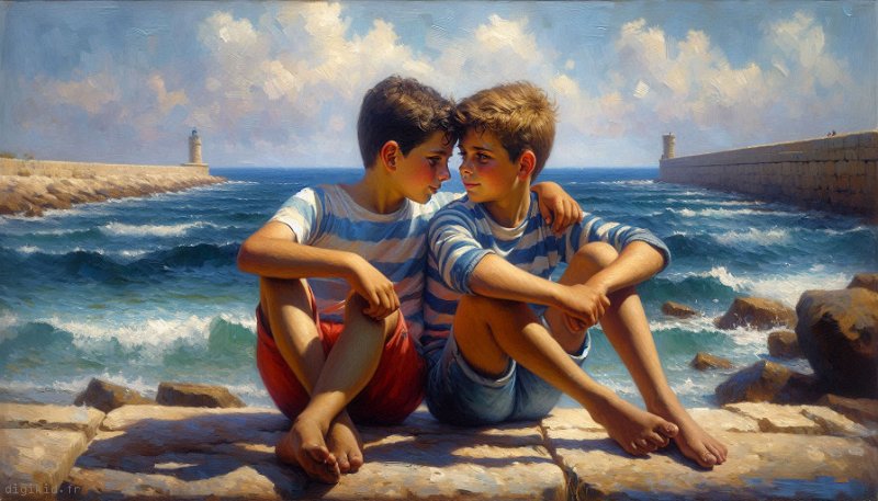 • Deux garçons à la mer